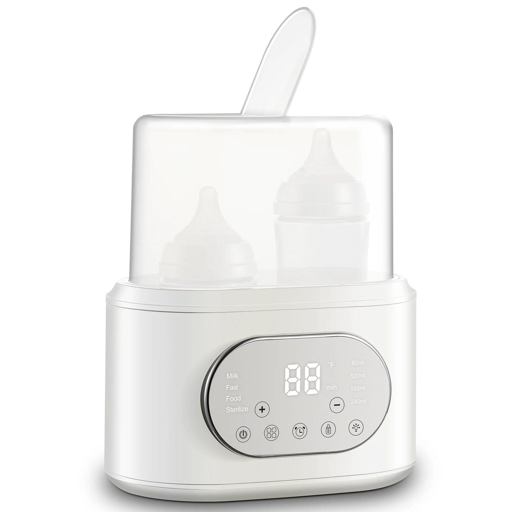 - Smart 10-in-1 functionality including Fast Steaming, Water Bath Warming, 24H Keep Warm, Thaw, Steam, Food Heating, Adjustable Timer, Adjustable Temp, Memory, and Night Light Feeding.