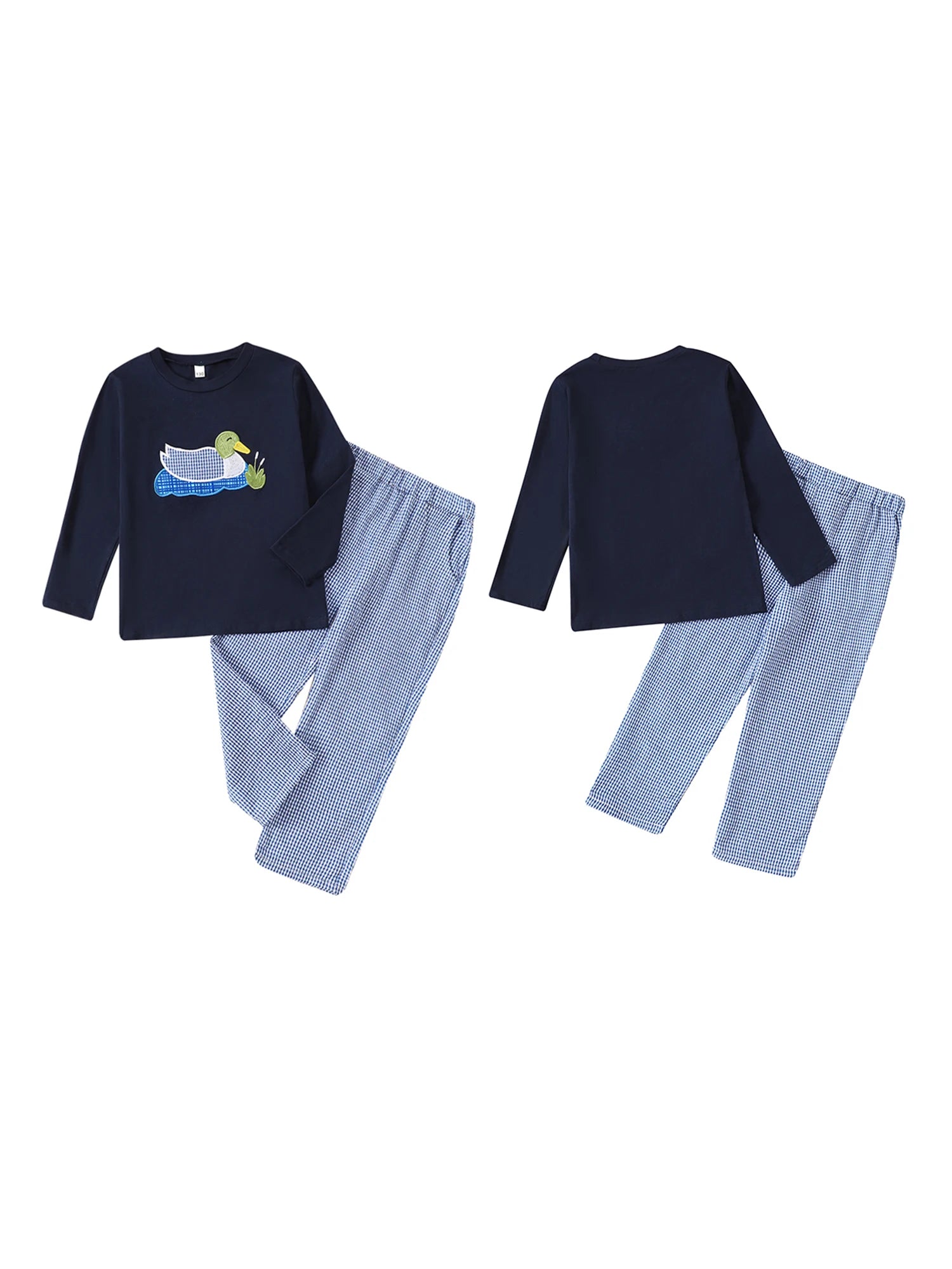 Your little boy shines in this adorable 2-piece duck embroidery outfit, designed for all-season comfort and everyday adventures.