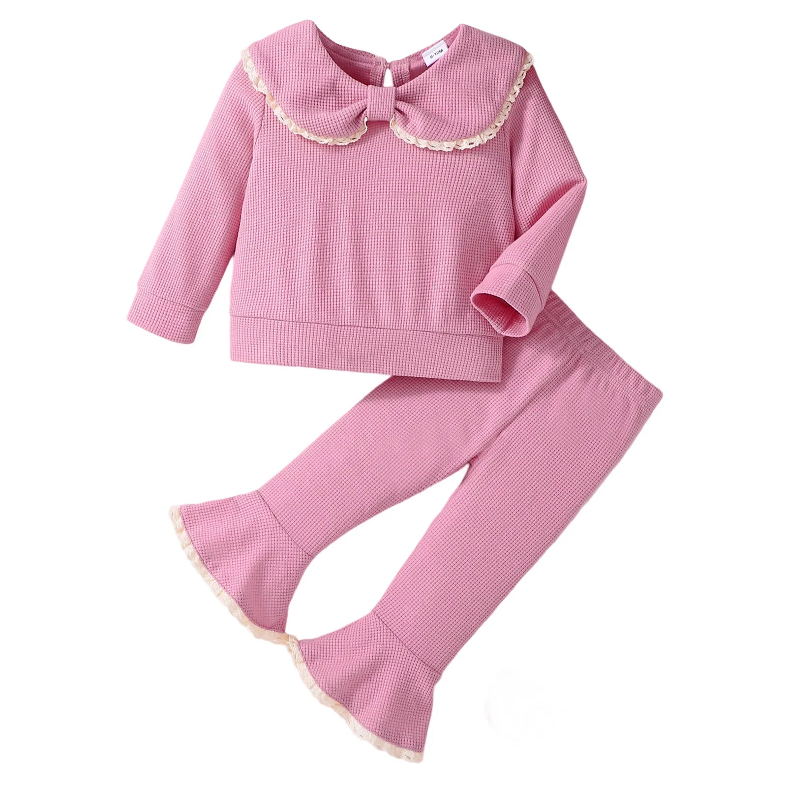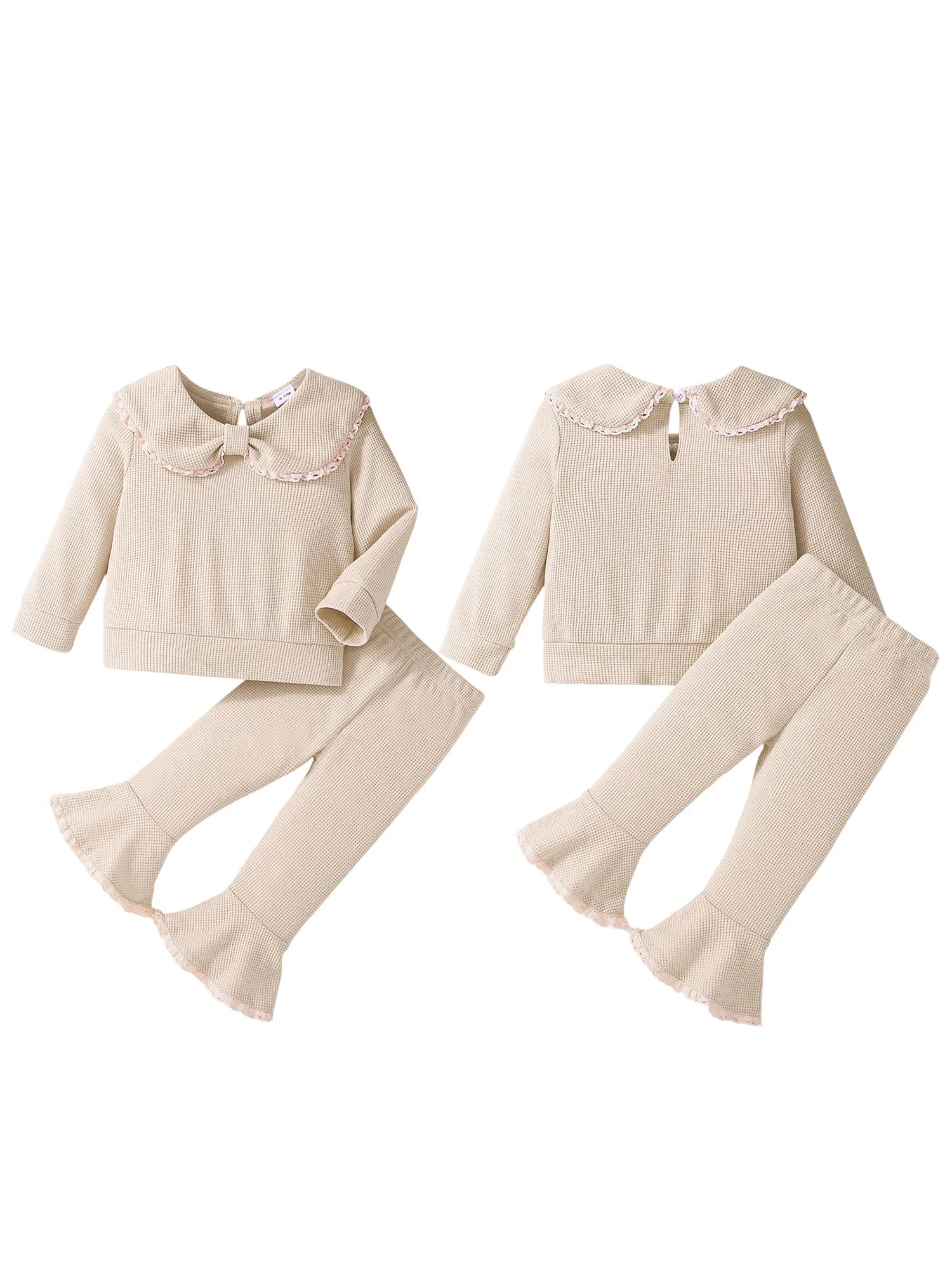 Meihuida Infant 2-Piece Autumn Set Bow Collar Top Flared Pants
