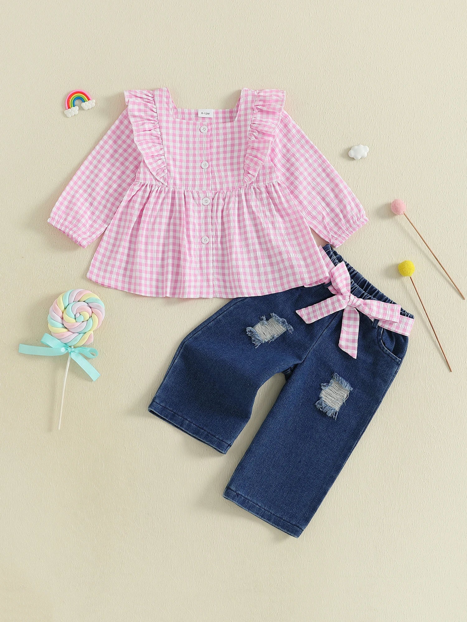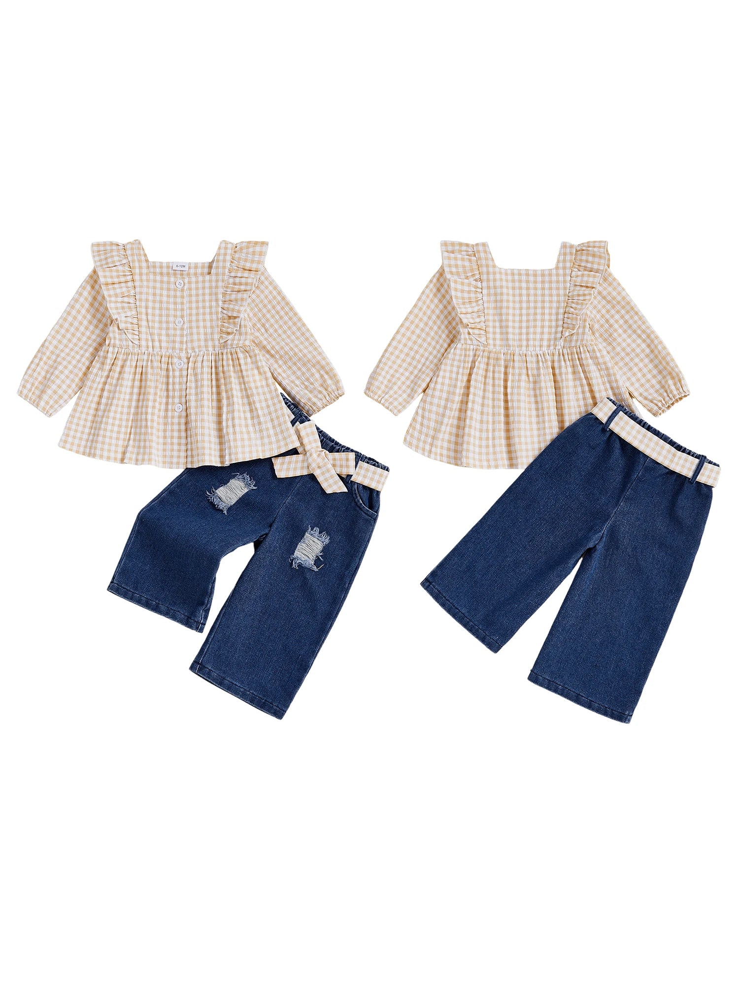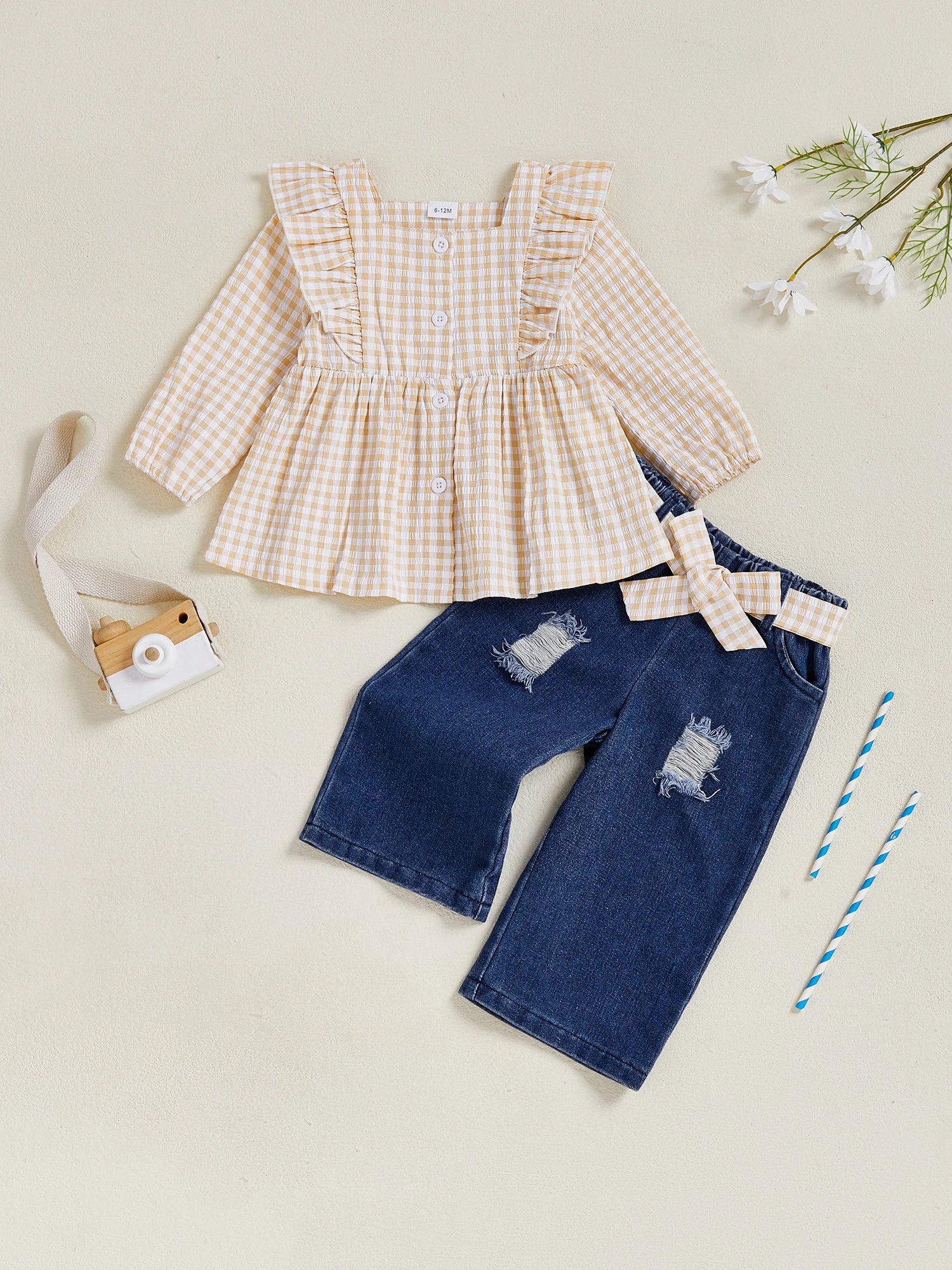 Chic plaid print top paired with belted pants creates an adorable, easy-wear outfit for your baby girl.