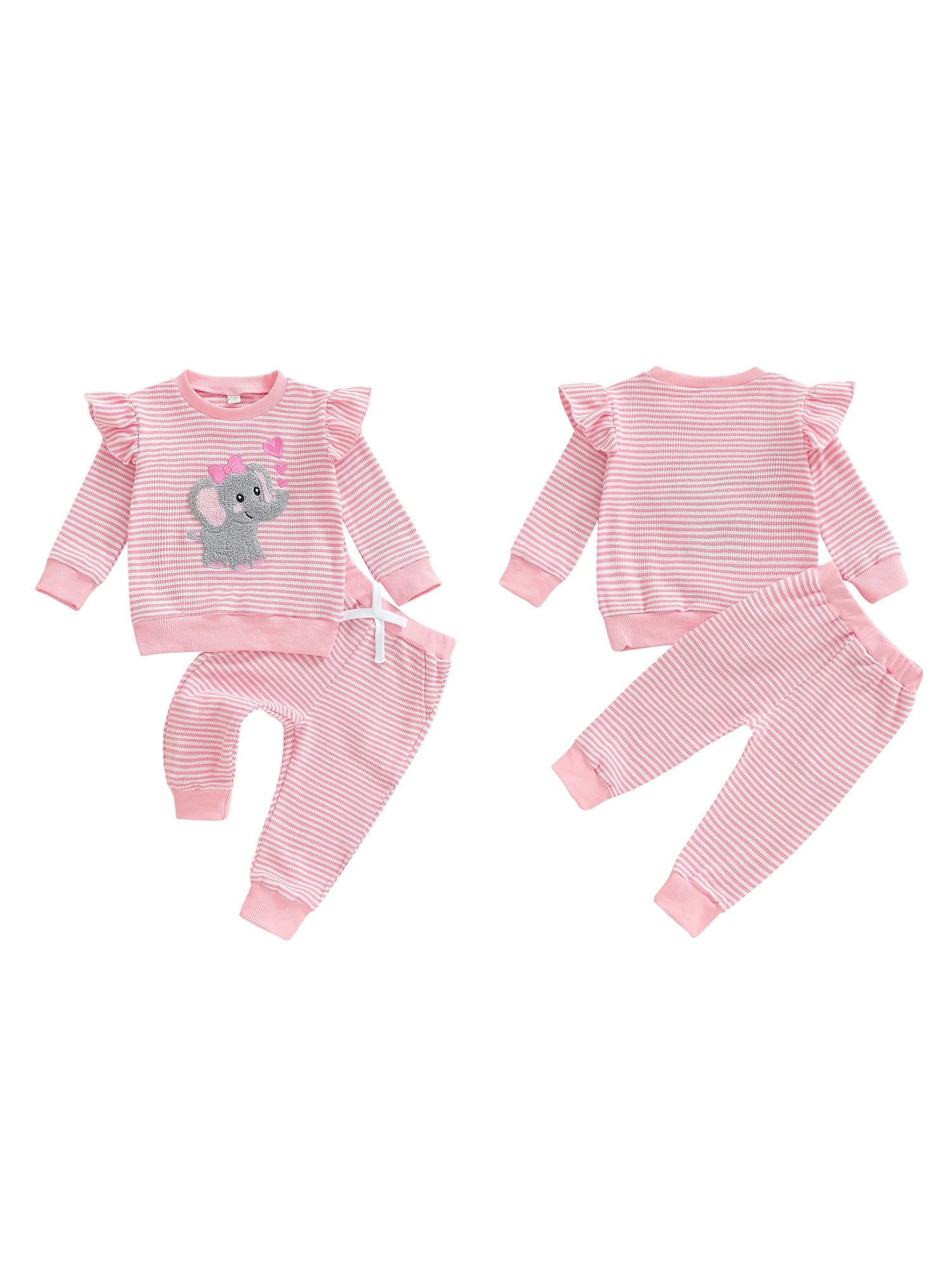 - Two-piece set: A long-sleeve round-neck pullover with elephant embroidery, paired with elastic-waist striped pants for effortless dressing and snug, all-day comfort during busy days.