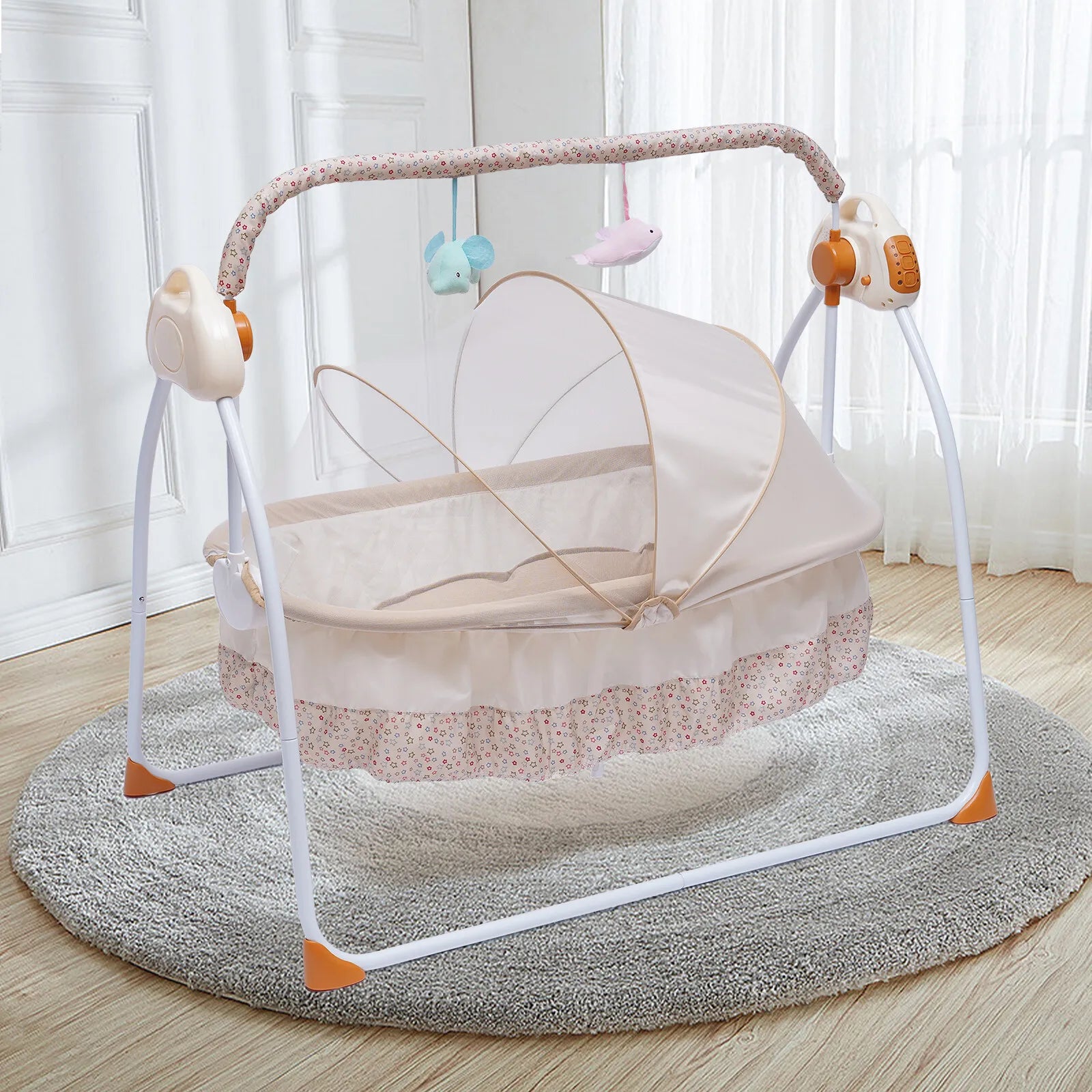 Experience soothing, balanced rocking for your little one with the Hign-Concerned Electric Baby Swing Cradle with Bluetooth.