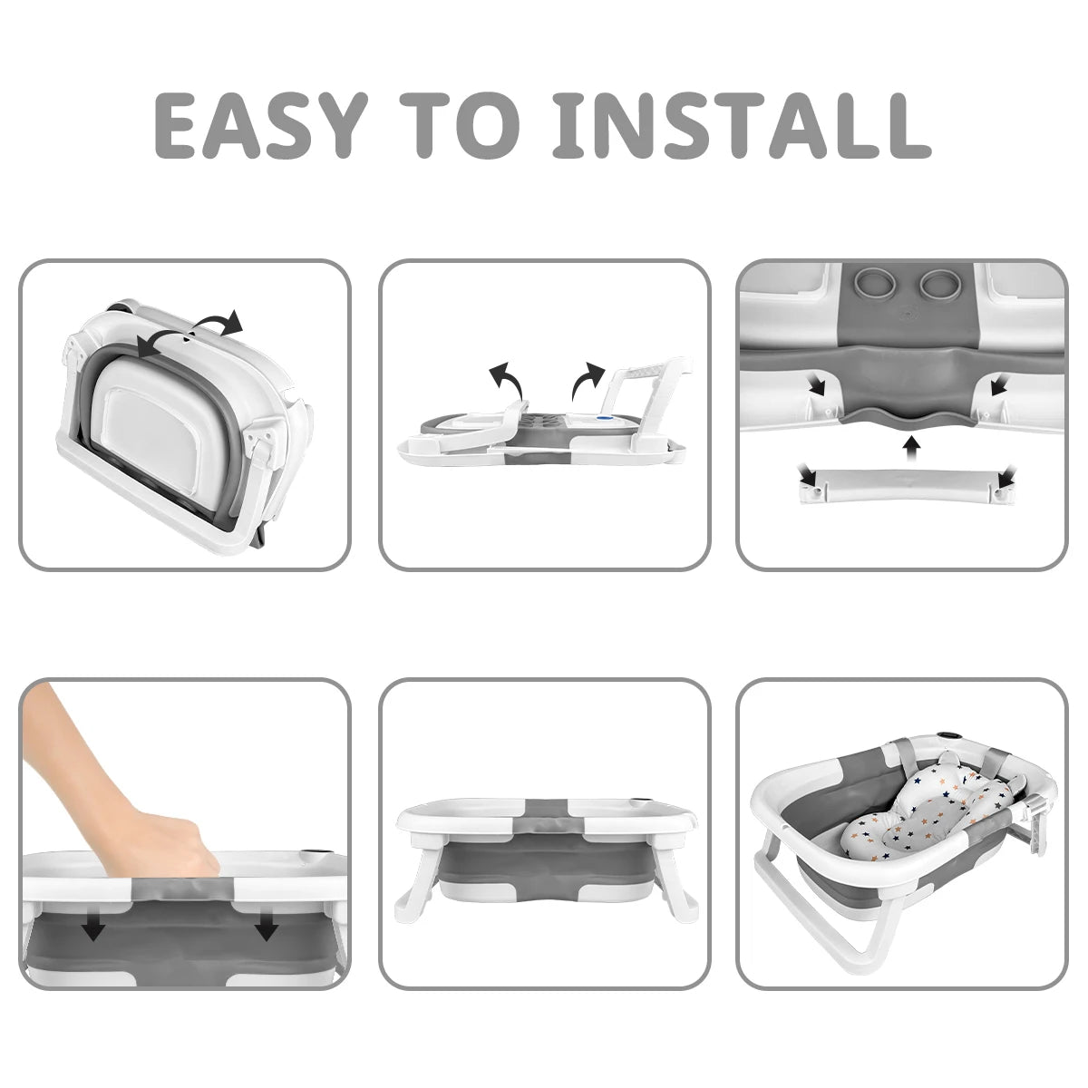 Hignconcerned Foldable Baby Bathtub With Thermometer