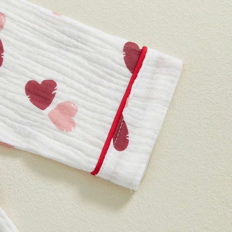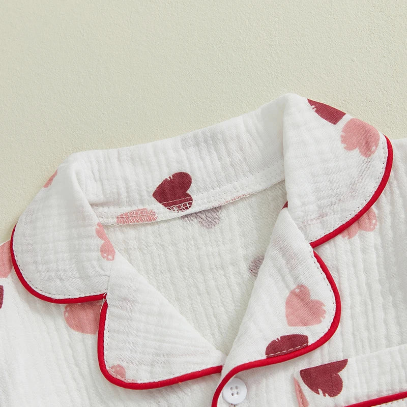 Girls Heart Pattern Pajama Set With Elastic Waist Pants
