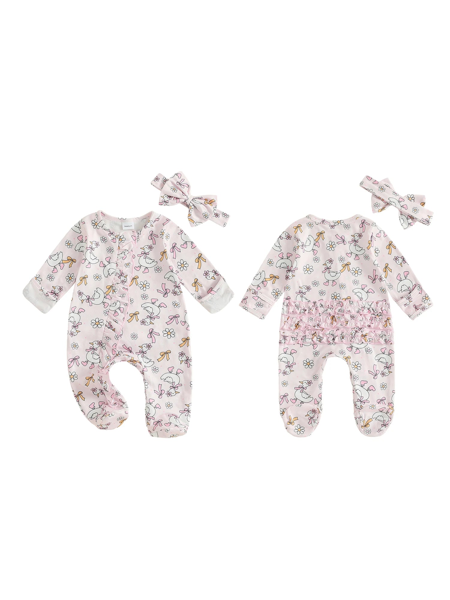 - Available in Newborn, 0-3M, and 3-6M, and includes one jumpsuit and one headband to fit your growing baby—perfect for gifting and growing with your little one.
