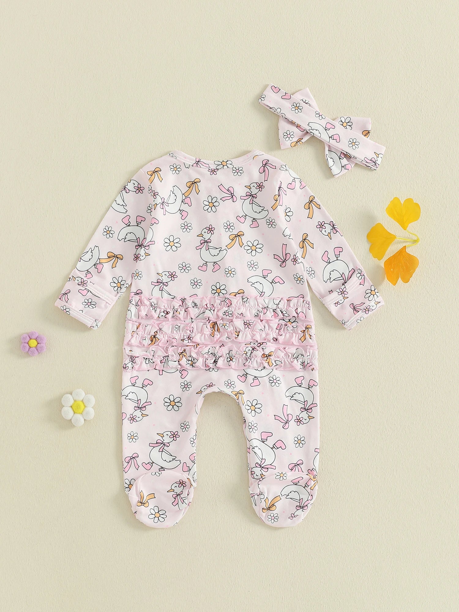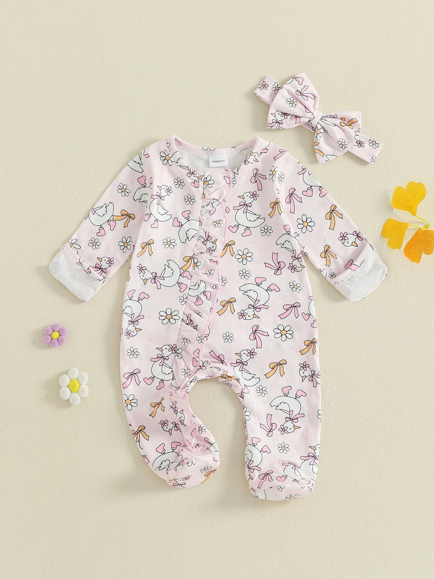 Guangdong Baby Floral Print Footed Romper and Headband Set