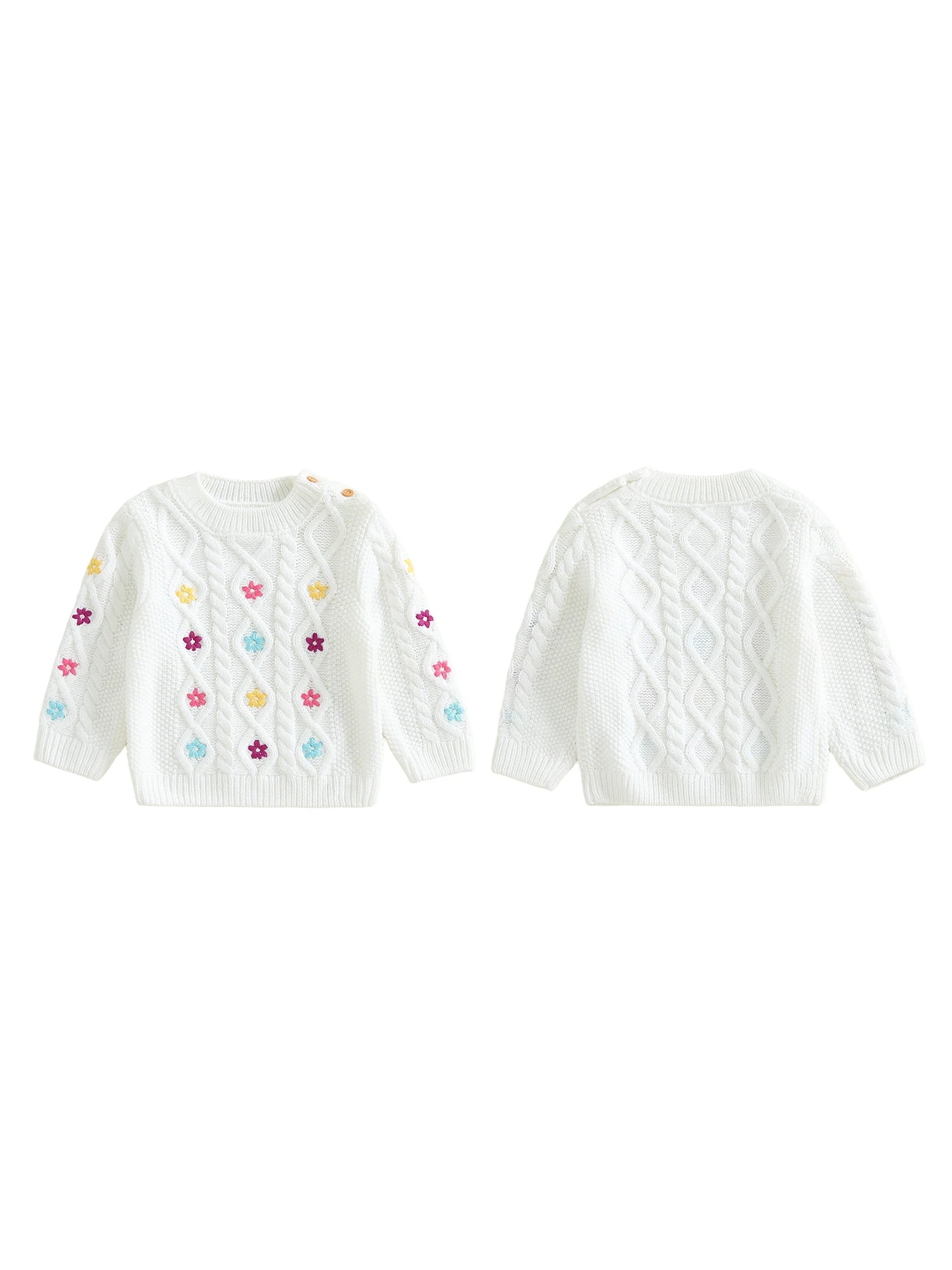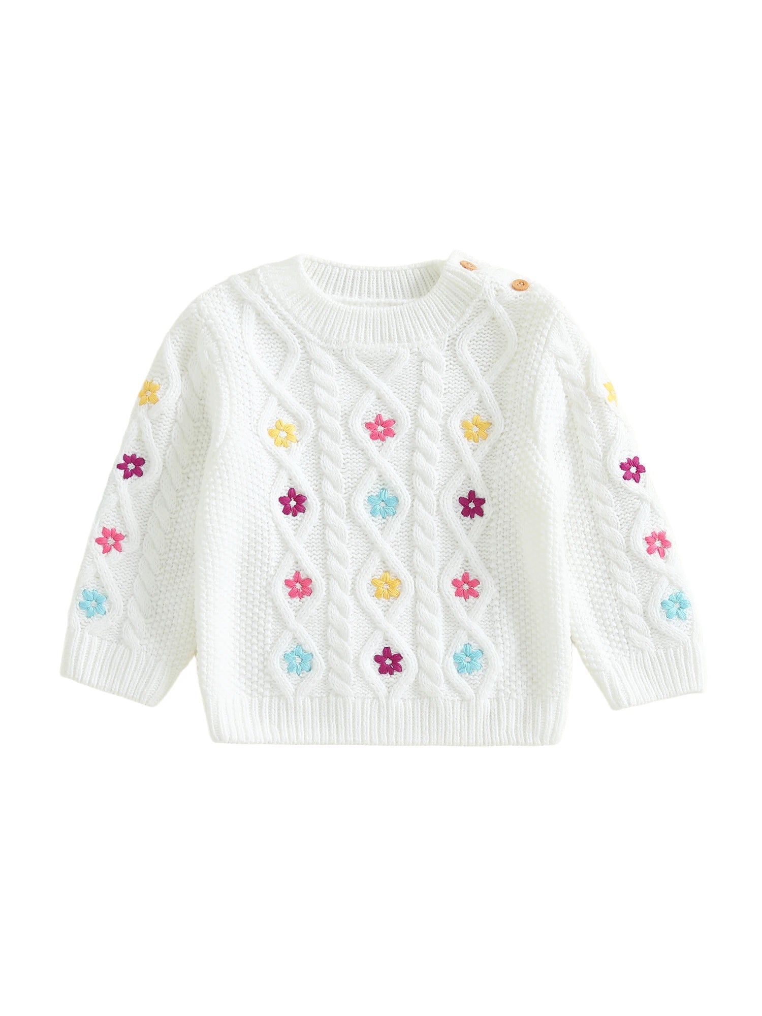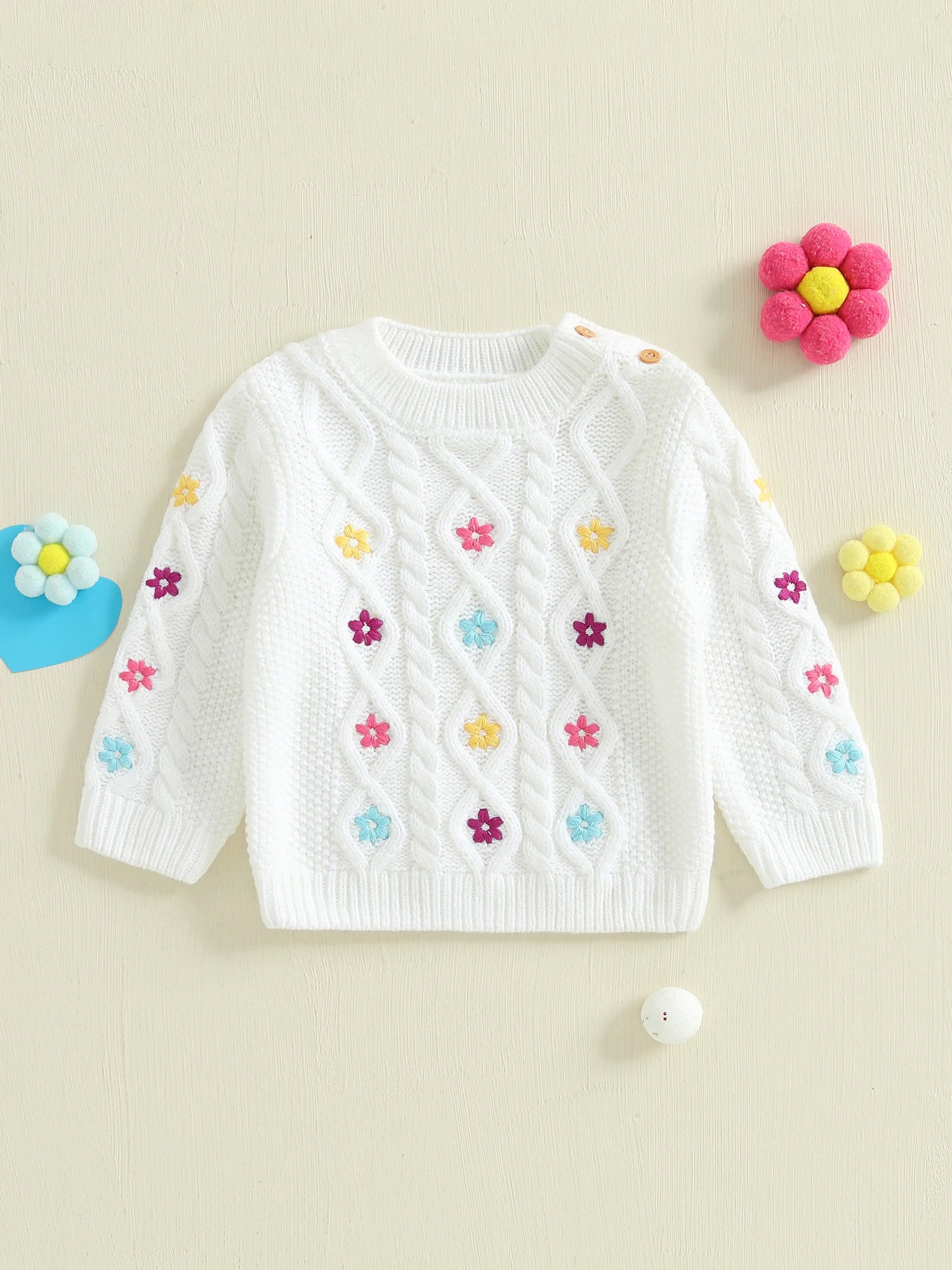 Delight in every season with this floral embroidered knit sweater for infants and toddlers, keeping your little one cozy, comfy, and endlessly stylish.