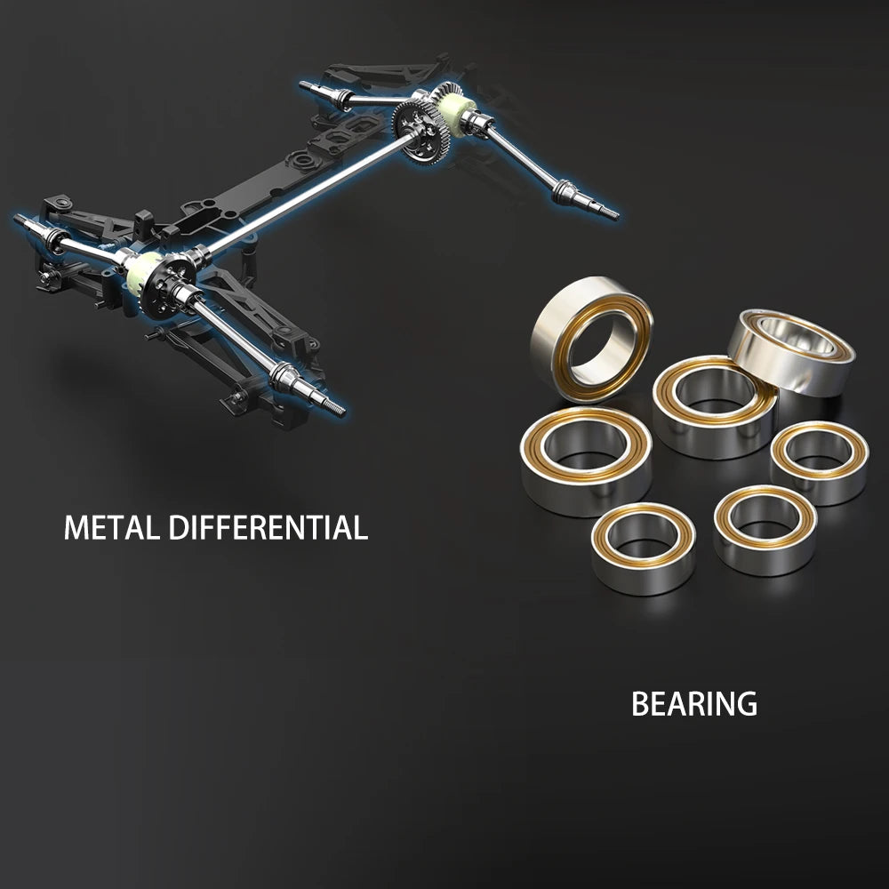 - All-metal build and suspension: You get durable, smooth handling over tough terrain thanks to all-metal hydraulic shock absorbers, a metal anti-collision head, and an all-metal transmission with a metal gear differential.