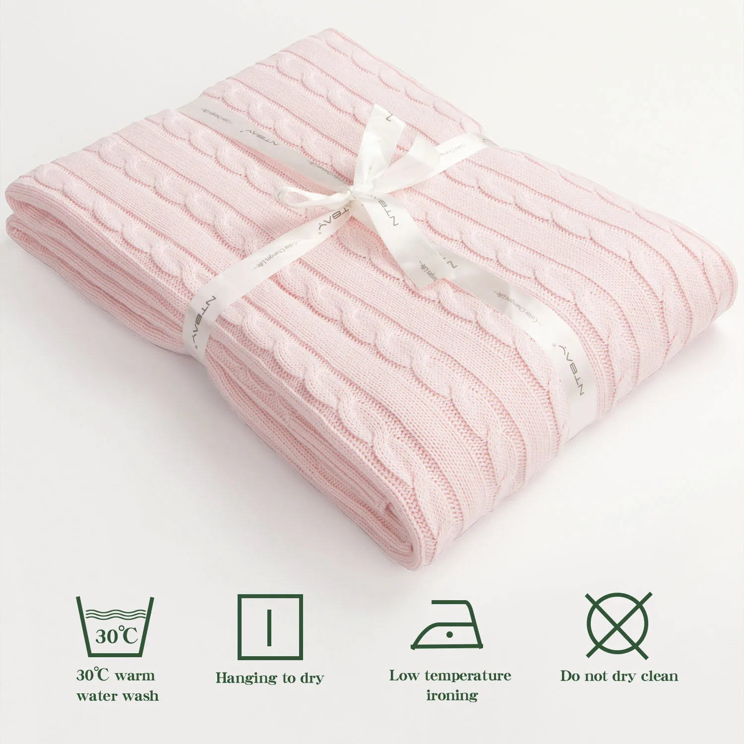 Ntbay 100 Percent Cotton Cable Knit Toddler Blanket Soft