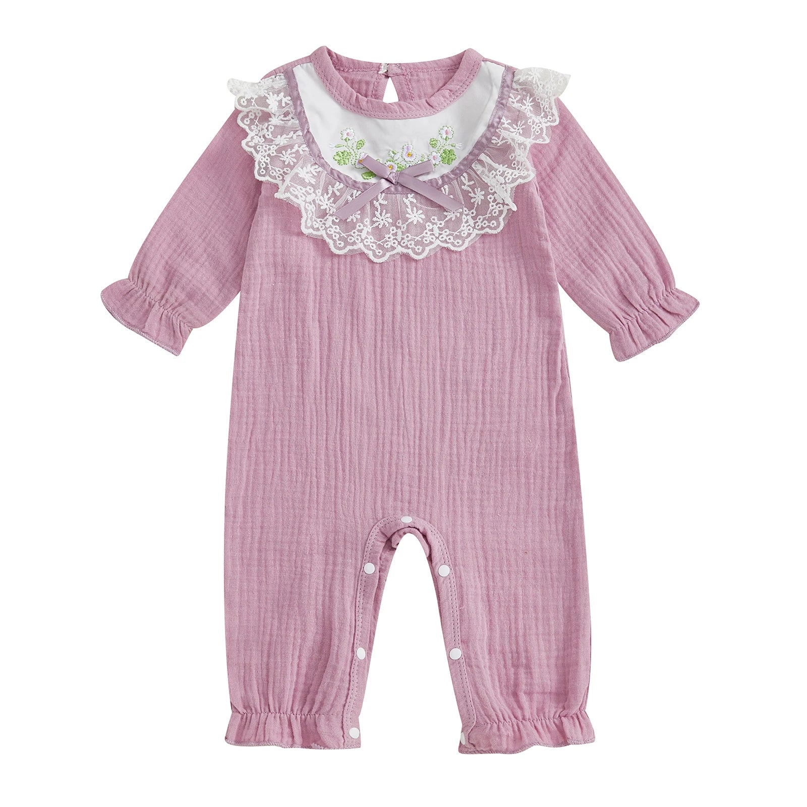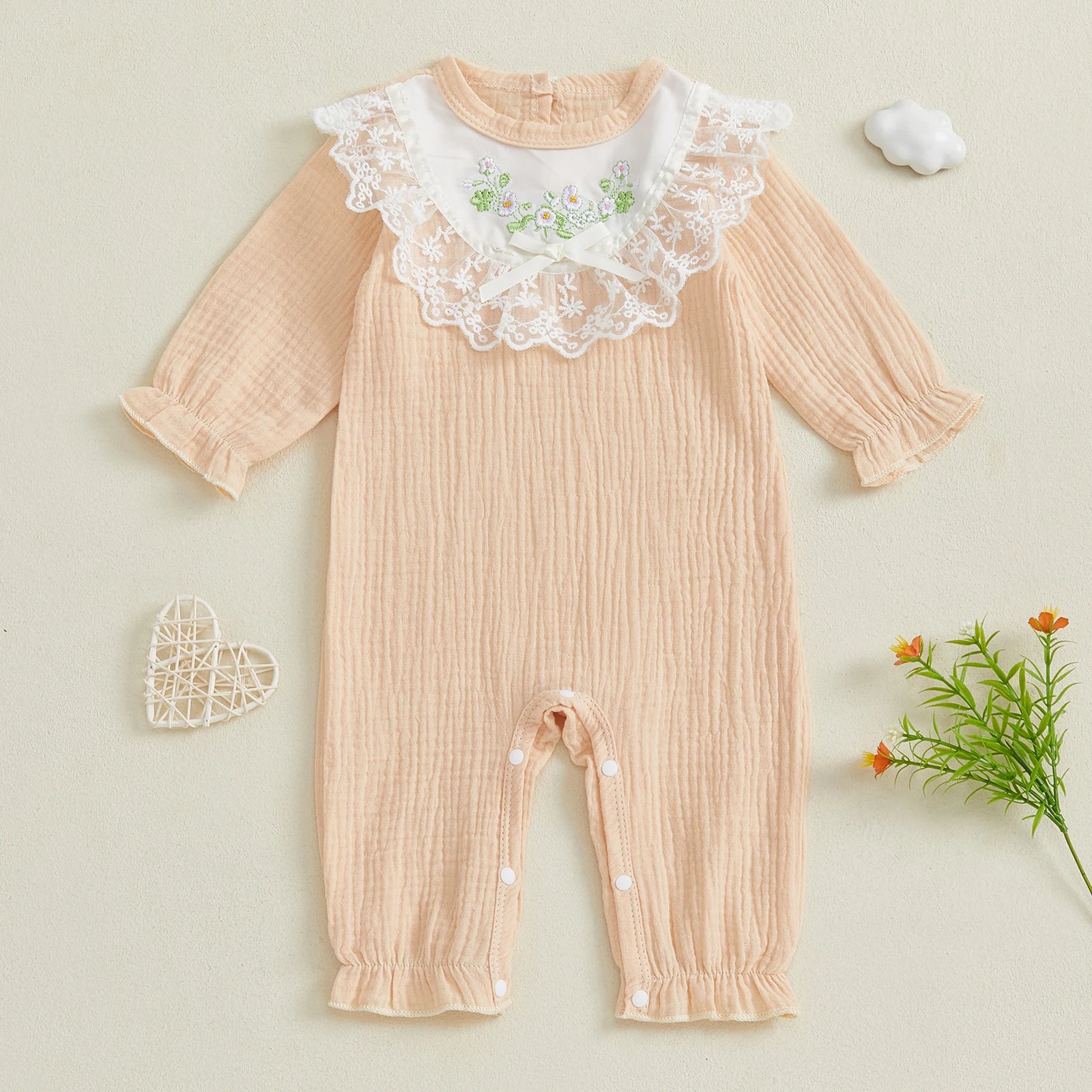 Dress your little one in timeless charm with this floral embroidery lace toddler romper.